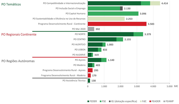 A dimensão financeira do conjunto destes programas operacionais específicos cifra-se em 25 mil milhões de euros para o período de programação 2014-2020, distribuídos segundo esta tabela: