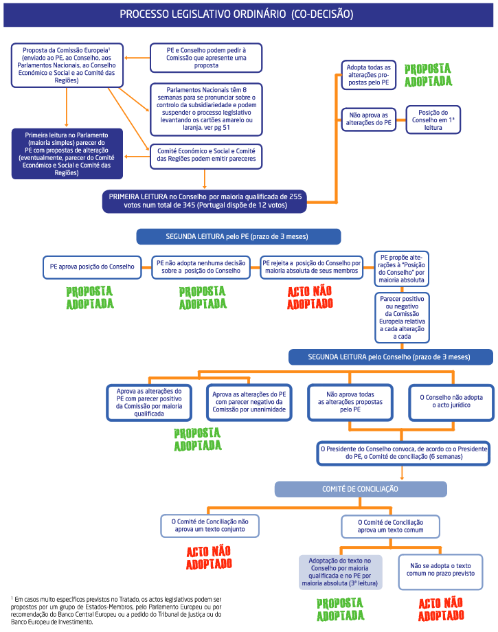 O processo legislativo ordinário (anteriormente co-decisão) foi instituído pelo Tratado de Maastricht e a sua nova nomenclatura atribuída pelo Tratado de Lisboa.